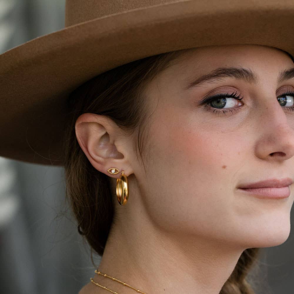 Made of brass with a heavy (7-10 mil) 24k gold plate and surgical steel posts and adorned with Czech crystals.