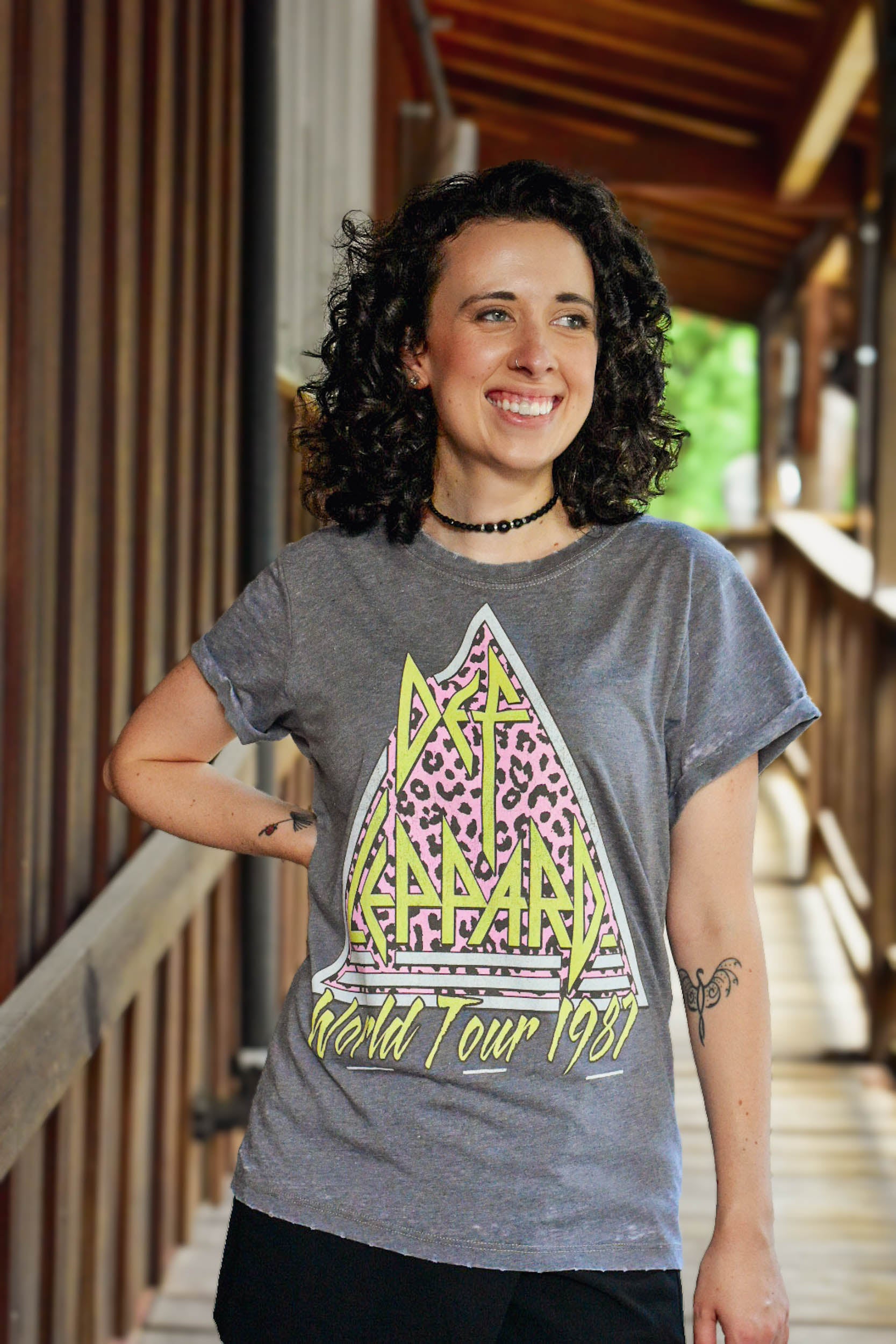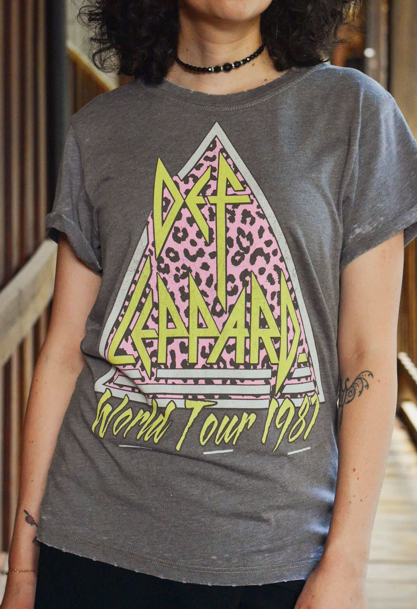 Wear some rock nostalgia with this 1987 World Tour inspired Def Leppard tee! Don't miss out on this fav shirt, with its perfect vintage wash and a touch of modern flare. Made with extra soft fabric, slightly cuffed sleeves, a ribbed crew neck, and a slightly fitted silhouette.