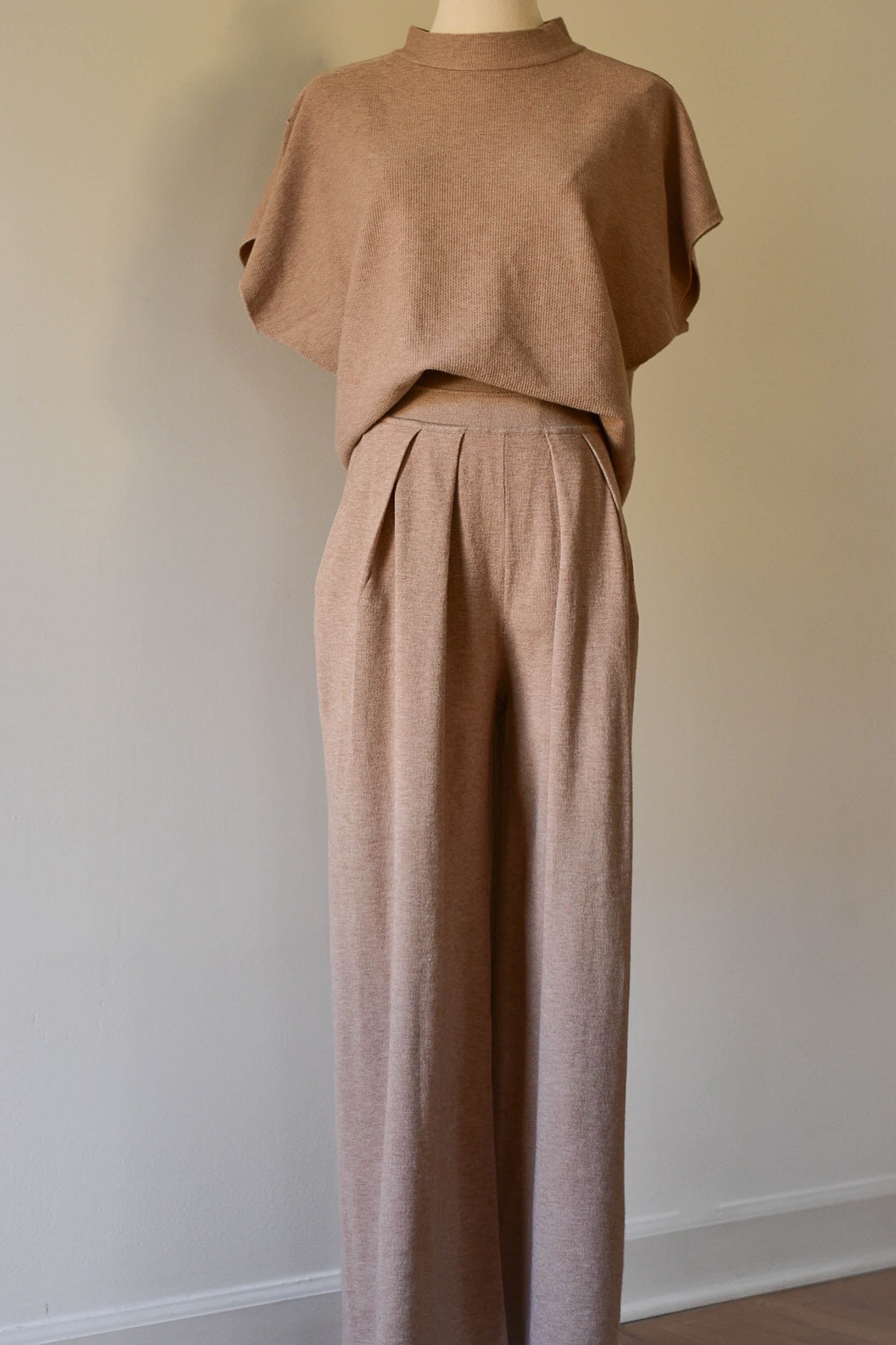 stretch knit set, elastic waistband, wide leg fits true to size . Mannequin is wearing size small.
