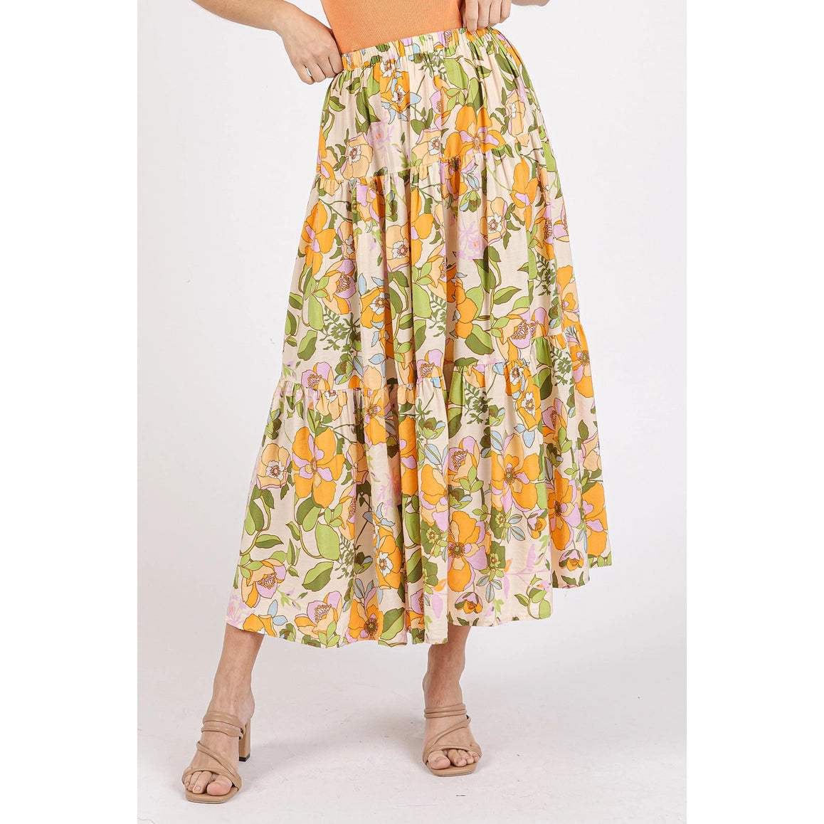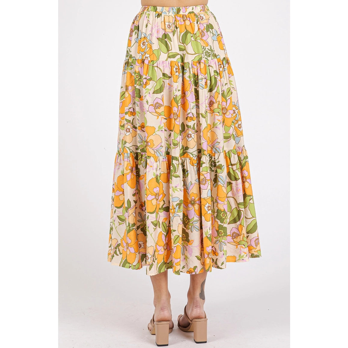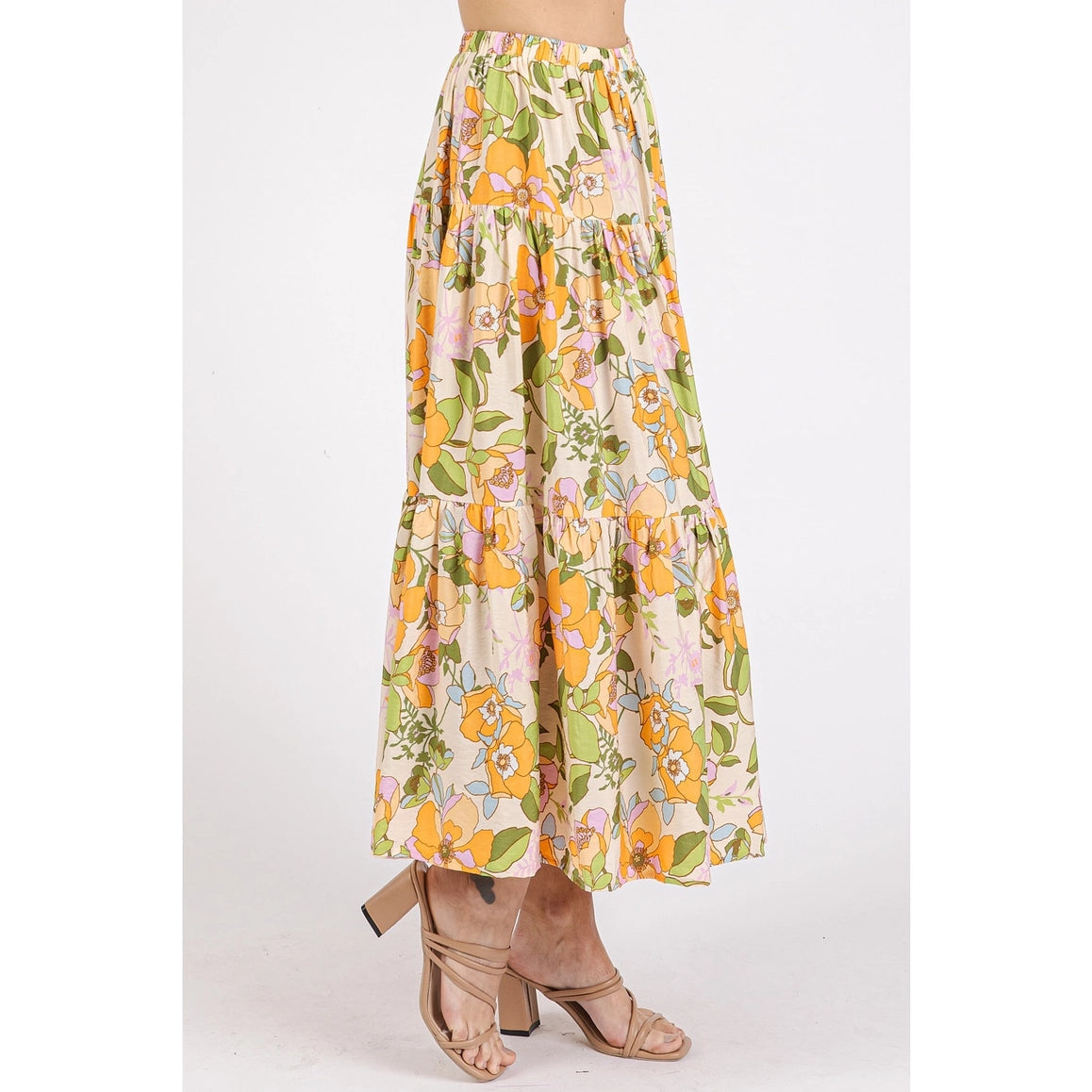 Step into sunshine with the Golden Groove Skirt! This playful maxi skirt features a vibrant flower print on soft woven fabric, an elastic waist for comfy all-day wear, and charming ruffle tier details that add flirty movement. Perfect for twirling through warm days and breezy nights with effortless style.
