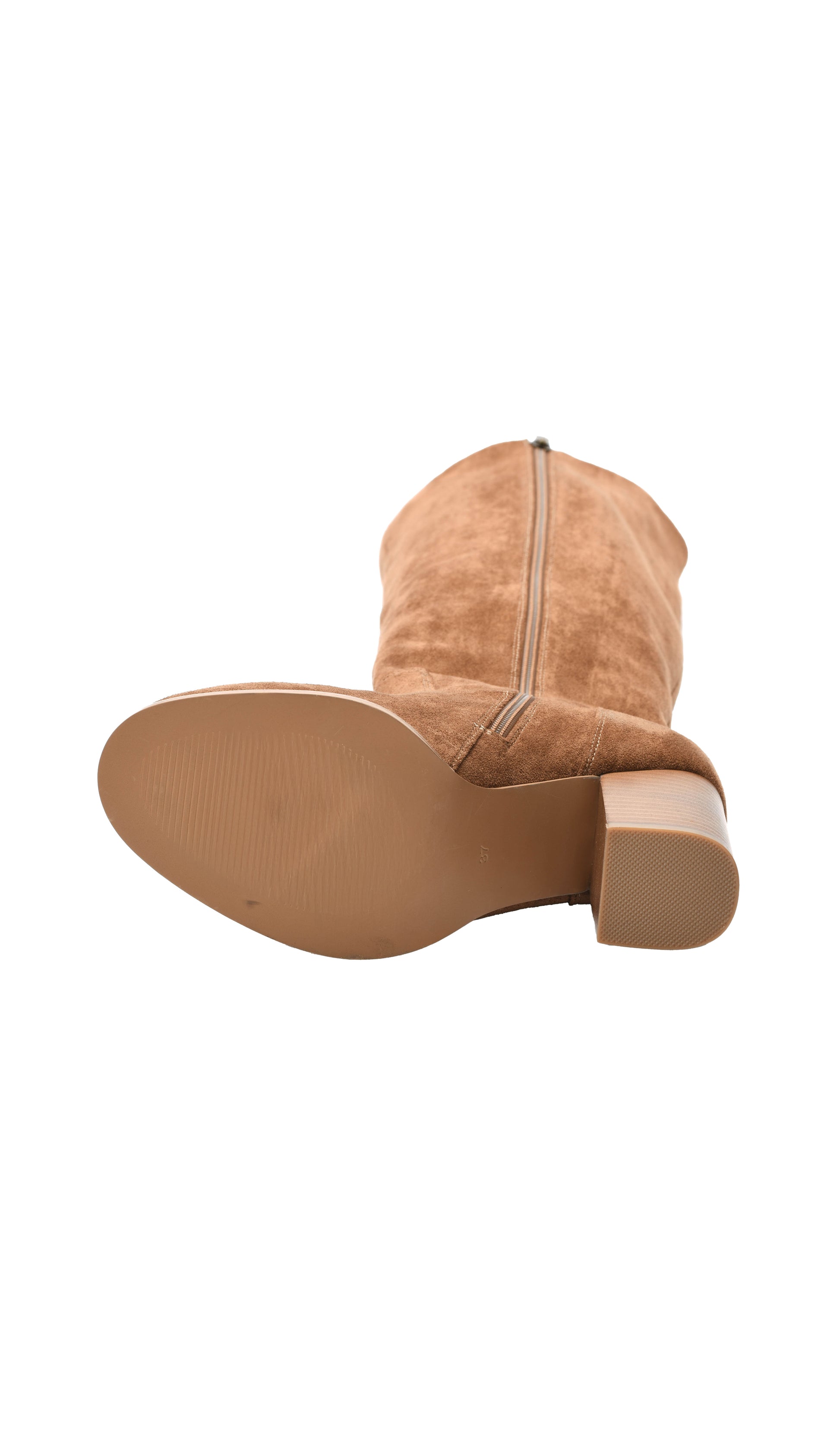 Get ready to turn up the heat with Hot Date Boots by Corkys! These luxurious knee high boots are made from brown suede and feature a 3.5 inch heel and side zipper closure. Don't just walk, make a statement with these flirty and stylish boots.