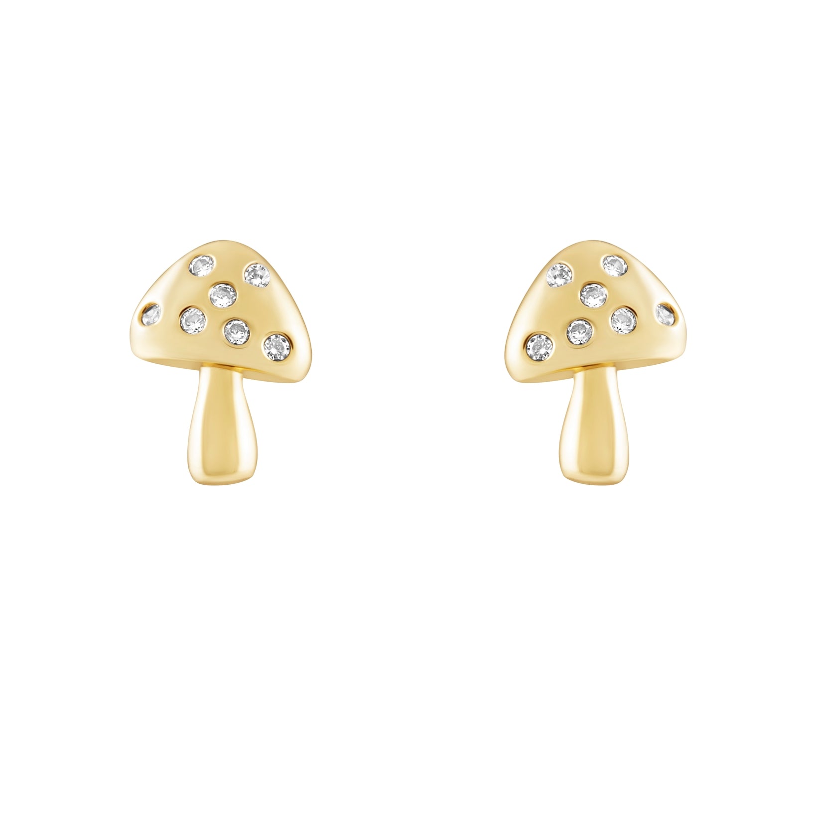 Upgrade your earring game with the Meadow Stud by Sahira. These 10mm earrings are made of 18k gold plated stainless steel and feature stunning CZ stones in a unique mushroom shape. Hypoallergenic and water/tarnish resistant, these studs are both stylish and practical. Get ready to make a statement with the Meadow Stud!