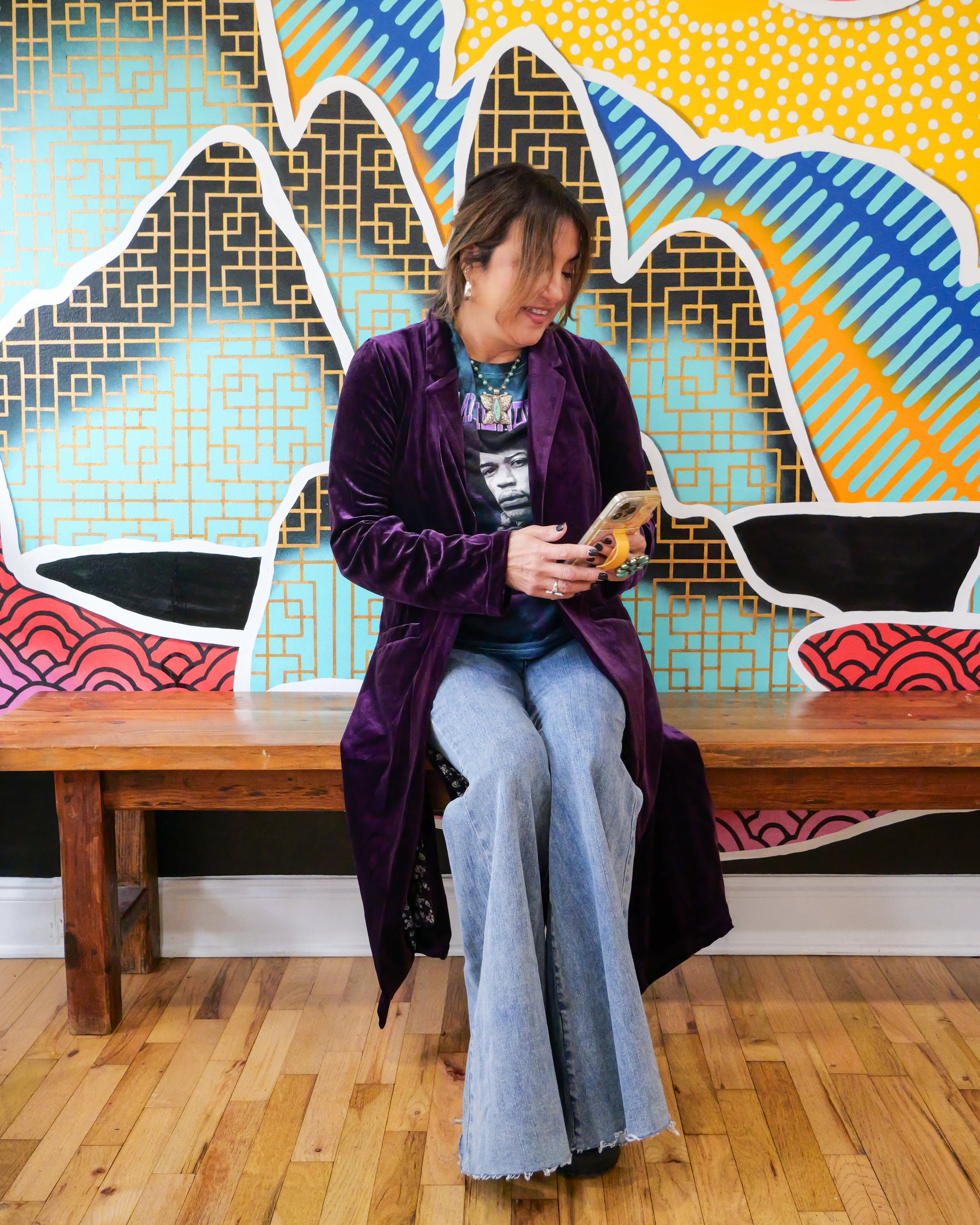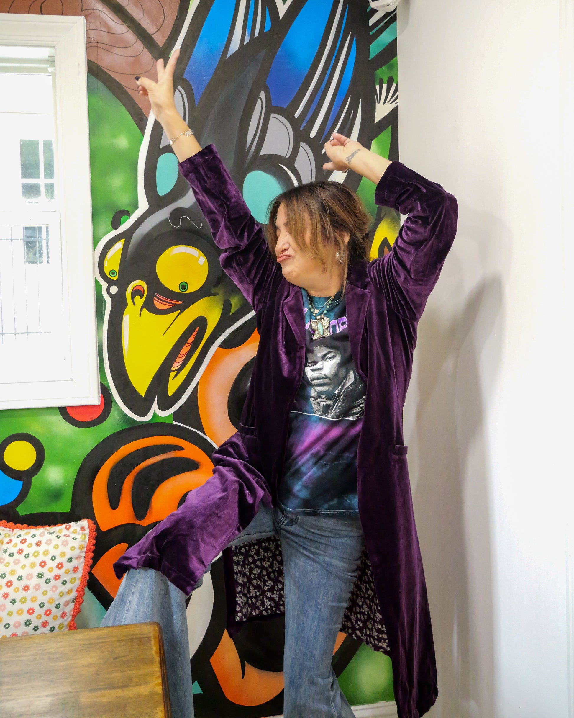 Wrap yourself in luxury with the Moonlight Amethyst Duster. This purple velvet long-sleeve beauty drapes just below the knees, adding a touch of mystery and glamour to any outfit. Perfect for those who love to mix comfort with a dash of playful elegance.