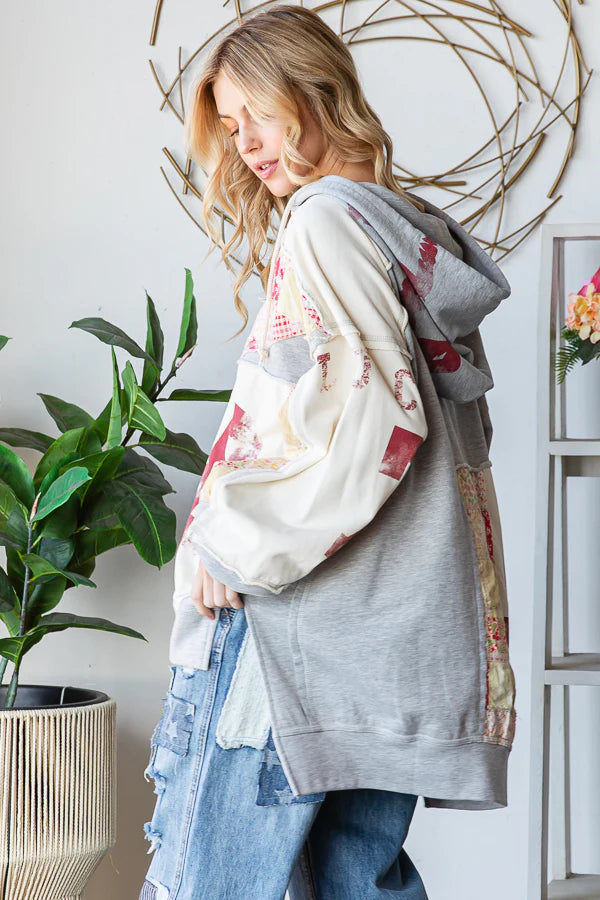 Embrace laid-back vibes with this washed patchwork hoodie featuring groovy letter print details. The mineral wash gives it that perfectly lived-in, vintage feel while the relaxed fit keeps you comfy all day long. Crafted from a breathable cotton-poly blend, it's true to size and effortlessly cool. Whether you're channeling peaceful energy or just keeping it casual, this imported piece is your new go-to for cozy style that speaks volumes without saying much at all.