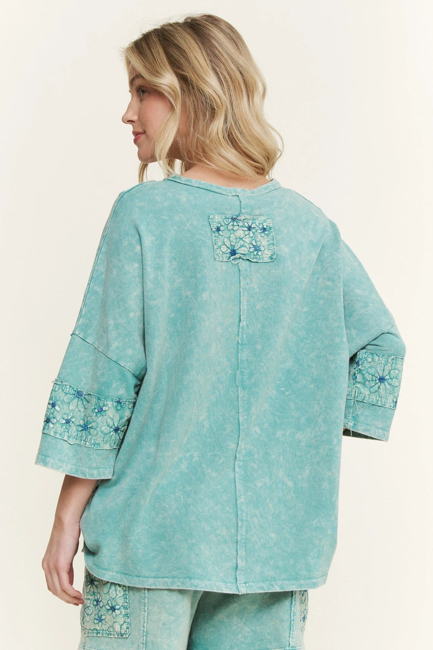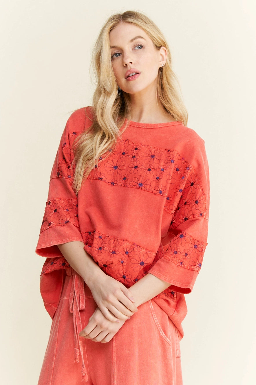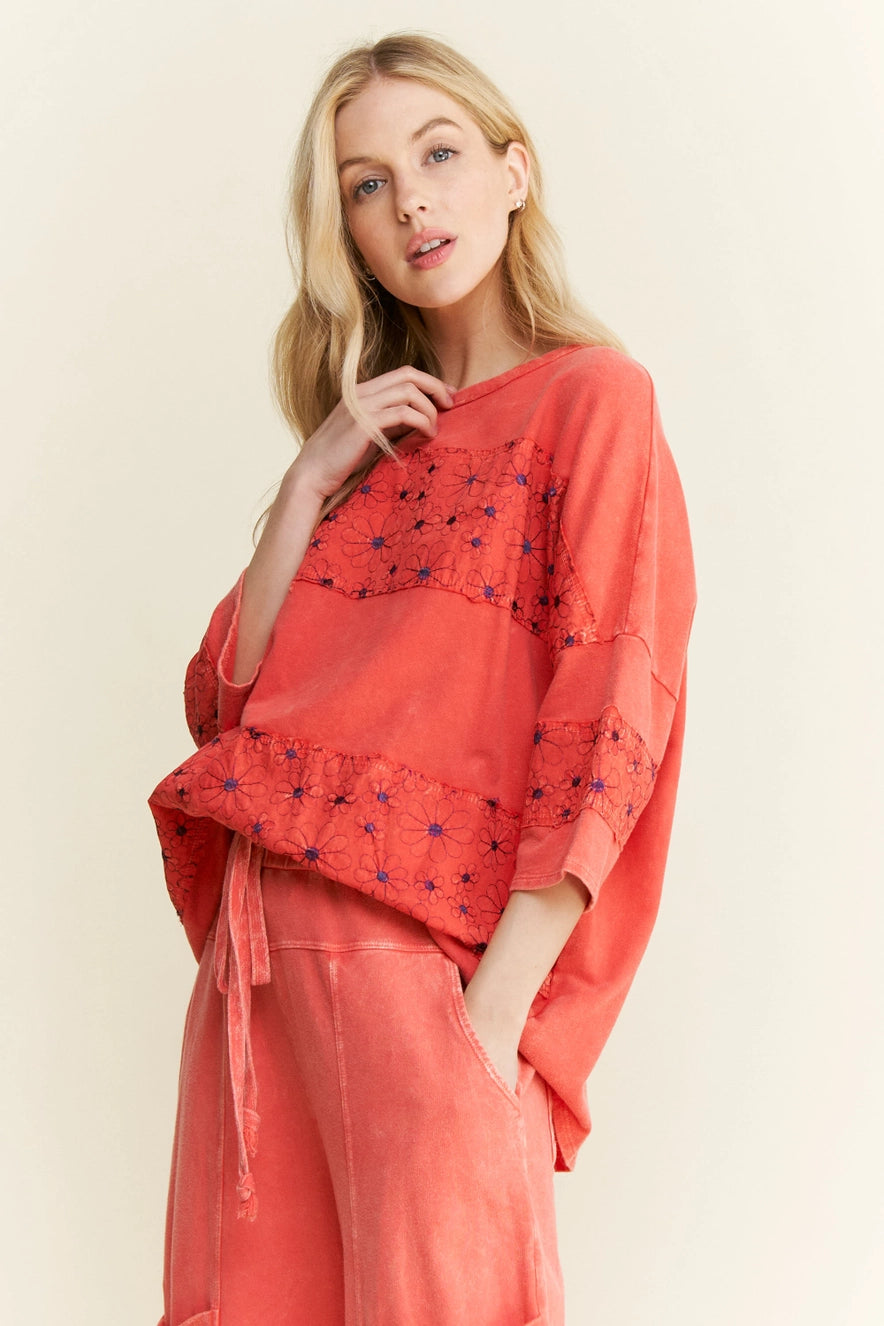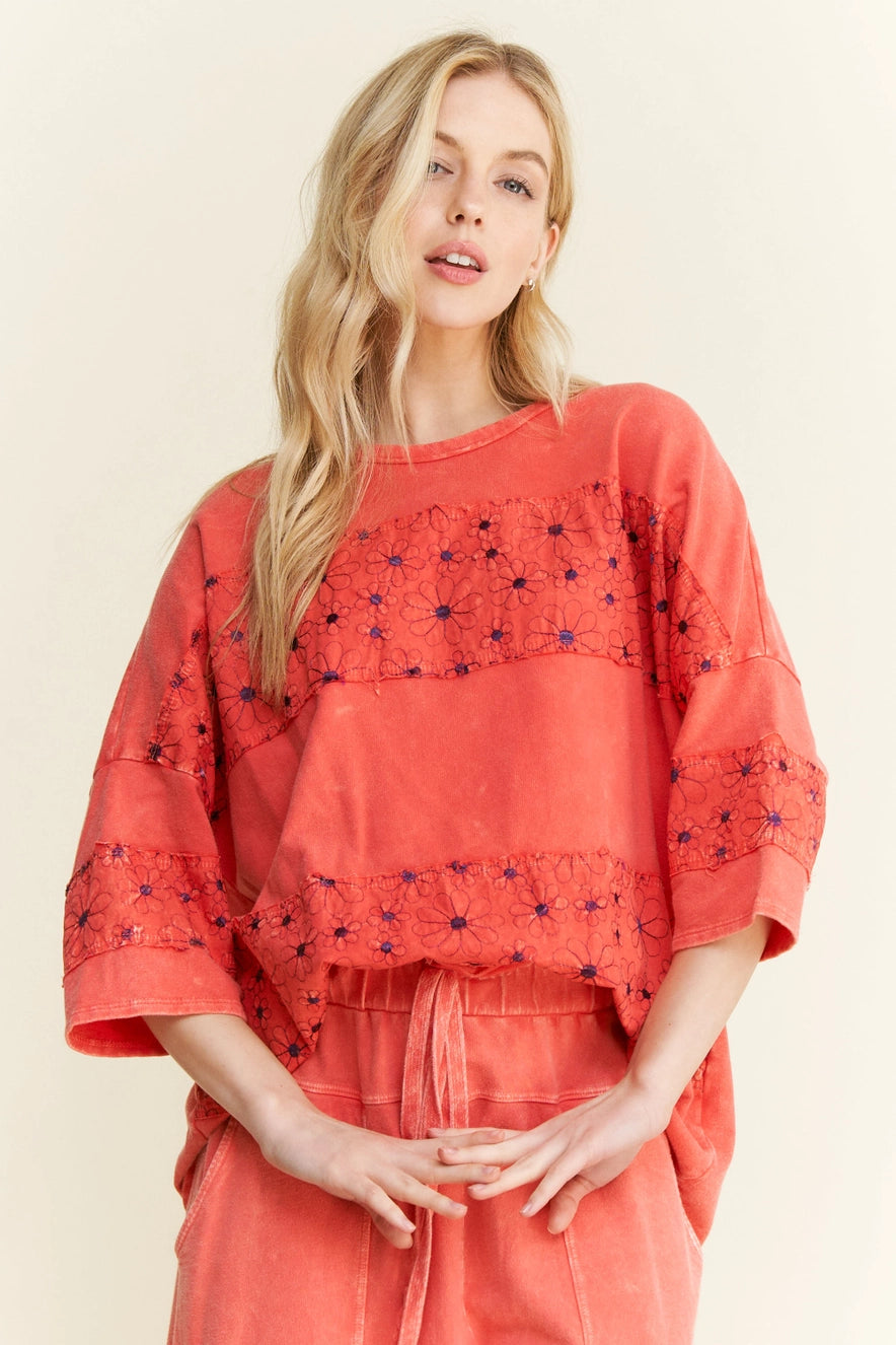 This Mineral-Washed, Flower-Embroidered Block T-shirt brings a fresh, fun vibe to your wardrobe. With its soft mineral wash finish and charming floral embroidery, it’s perfect for adding a splash of playful style to any casual outfit. Comfortable and eye-catching, it’s your go-to tee for effortless cool all day long.