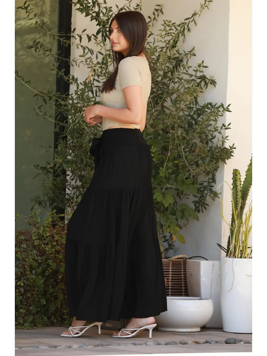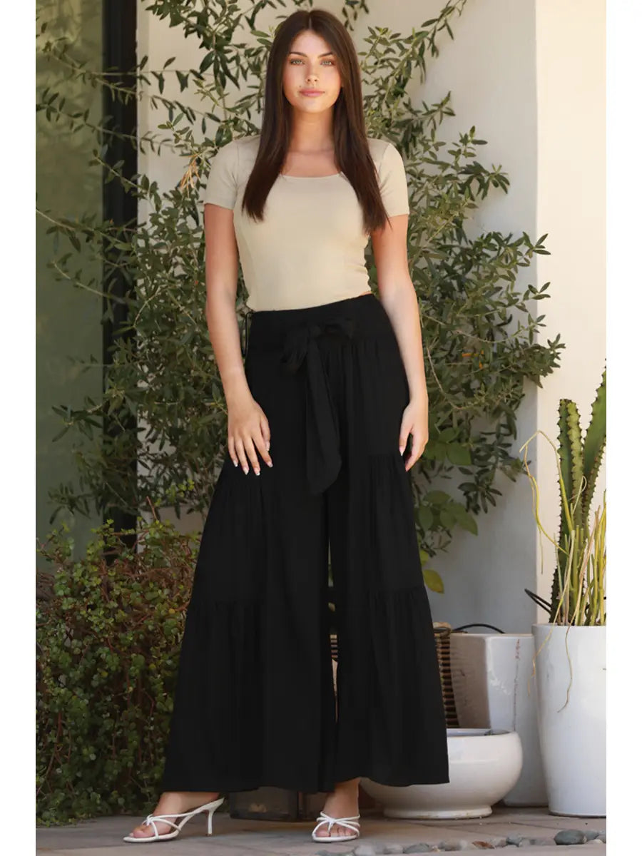 Step into comfort and style with the Stargazer Flow Pants! These wide-leg, tiered pants feature a playful tie waist that lets you adjust your fit while adding a fun flair. Their sleek black color makes them perfect for everything from casual days to lively nights out. Embrace effortless chic with pants that move with you and keep your look fresh and fabulous.