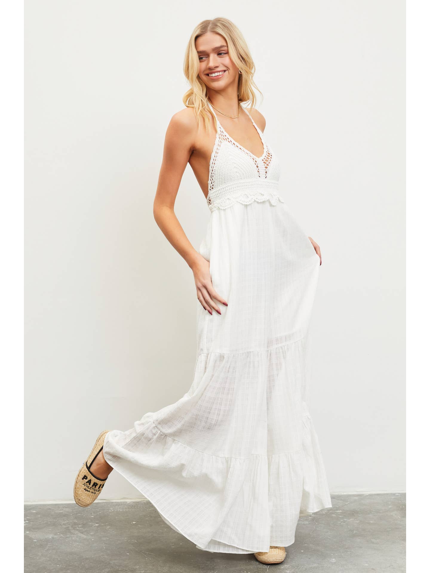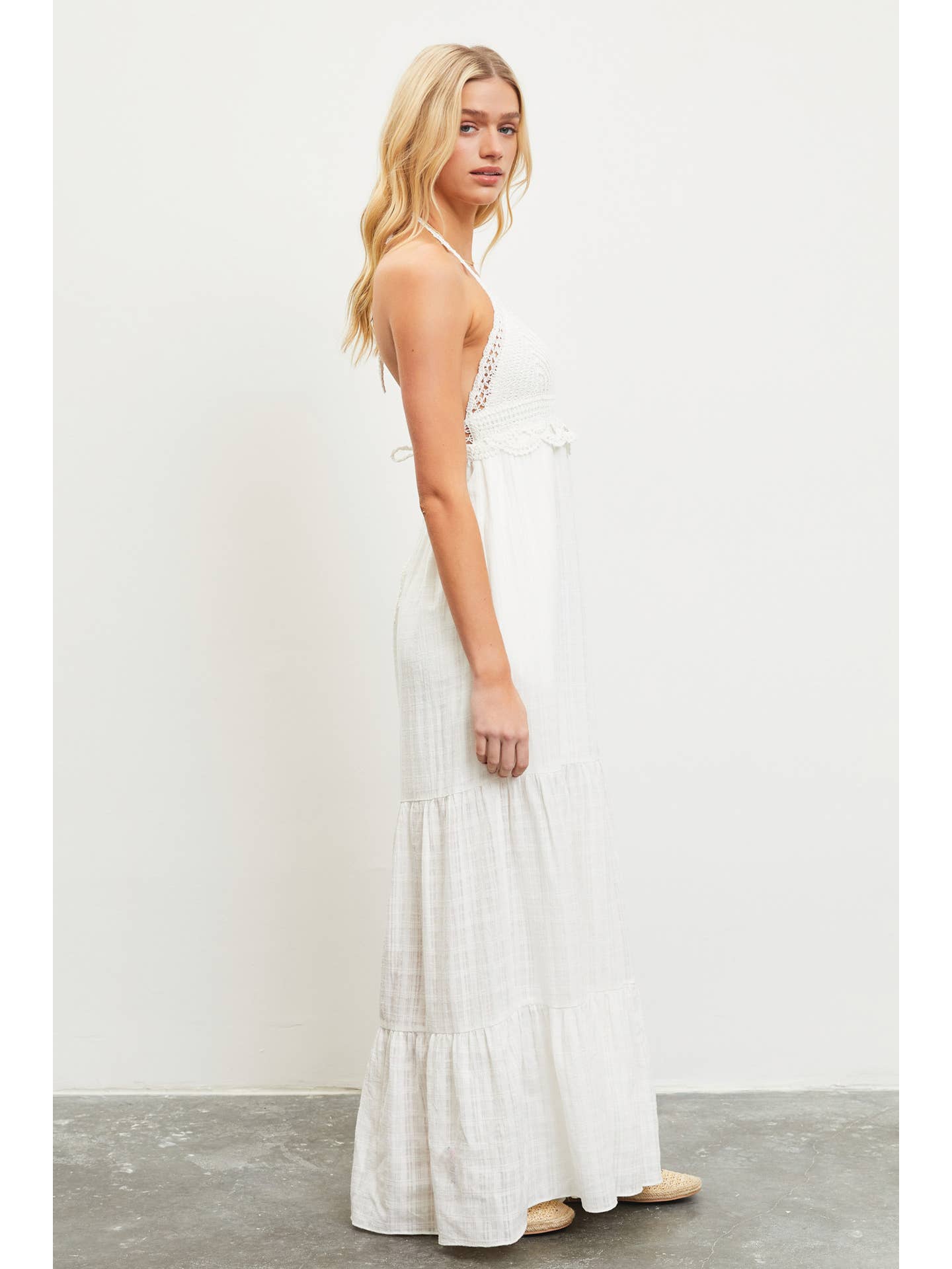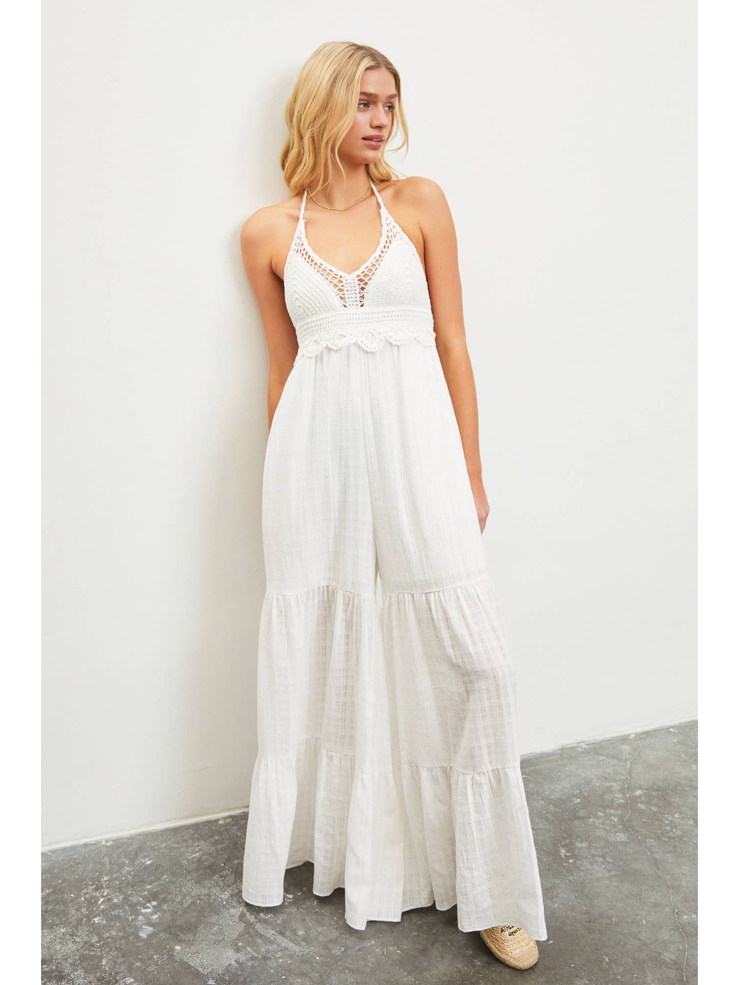 Introducing our Wild & Free Crochet Jumpsuit - an effortlessly chic and playful ensemble. The halter style adds a touch of flirtiness while the crochet top and wide leg make it a standout piece. The cream color, lined design, and light, flowy fabric will have you feeling wild and free in no time!